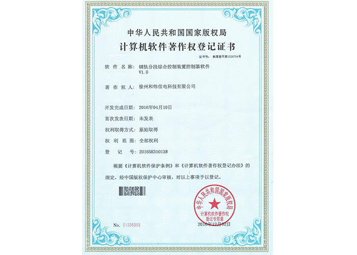 • 2016SR350138 鋼軌分段綜合控制裝置控制器軟件V1.0