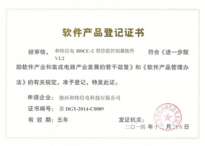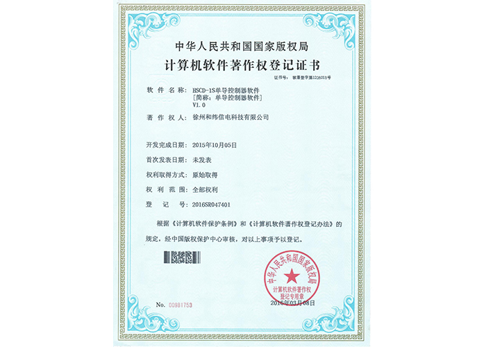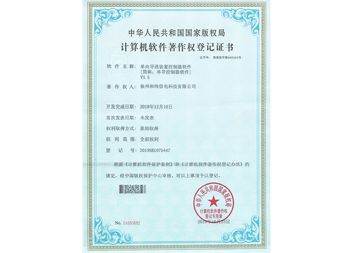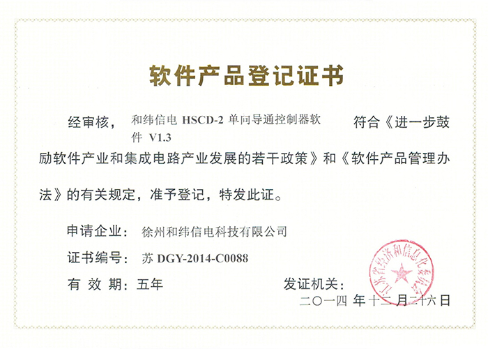 • 10軟件產(chǎn)品登記證書——和緯信電HSCD-2單向?qū)刂破鬈浖1.3