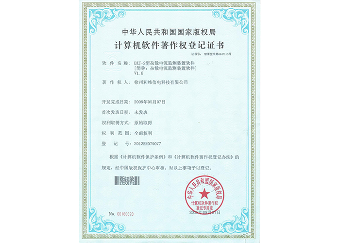 • 10軟件產(chǎn)品登記證書——和緯信電HSCC-2型排流控制器軟件V1.2